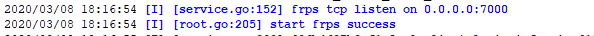 之后直接输入命令 ./frps -c ./frps.ini 启动服务,出现下面内容则启动成功