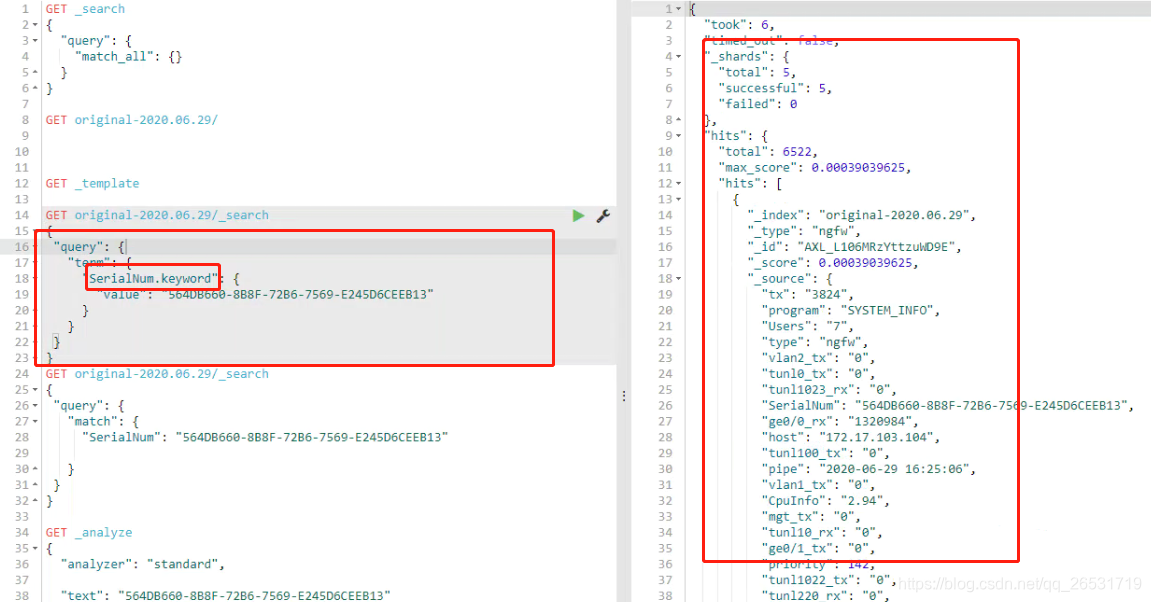 4.由第三步的结果可以看出term为什么匹配不到了,那么既然设置了两种索引模式,那么怎么才能匹配到呢,查询语句如下: