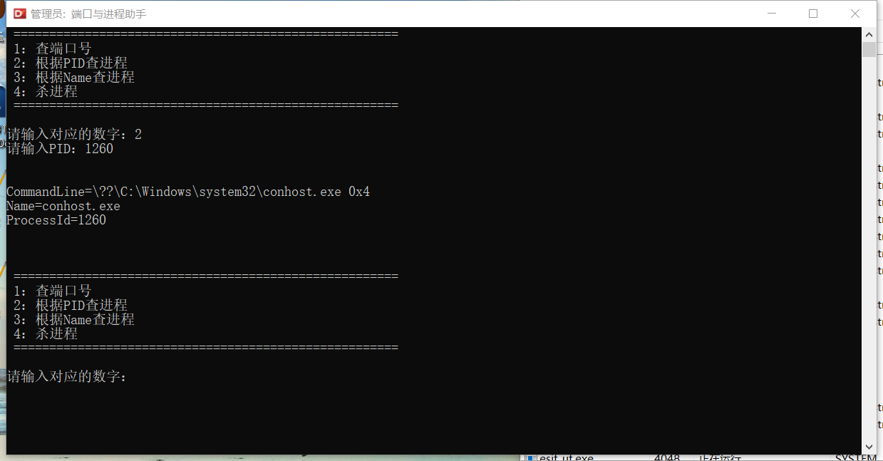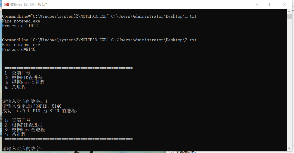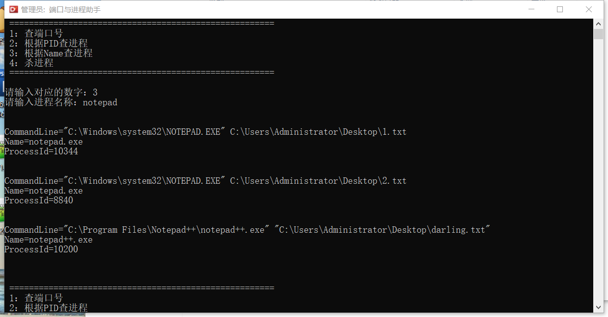 这里的进程名称支持模糊查询,从图中可以看出,输入的进程名称为:notepad,第三个查询的结Name=notepad++.exe。