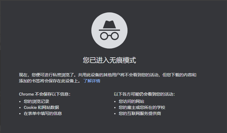 使用快捷键 ctrl + shift + N 可进入代码匿名模式下的chrome新标签页。
