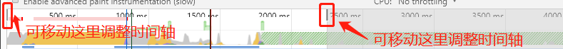 1、录制、停止按钮可实时绘制一段时间当前页面时间轴的性能轨迹,时间为秒,停止后生成一张性能分析图。