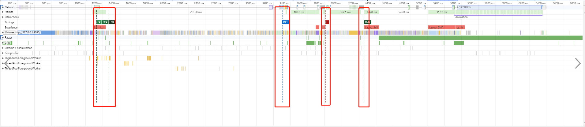 其中 FP、FCP、FMP 是同一条虚线,三者时间不一致。比如首次渲染过后,有可能出现 JS 阻塞,这种情况下 FCP 就会大于 FP。