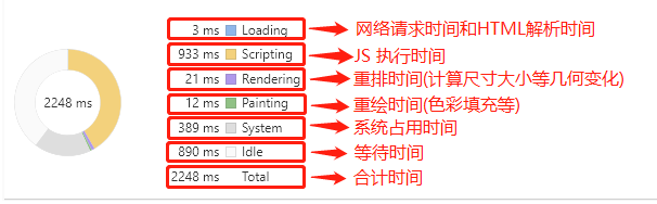 黄色(Scripting):表示 JavaScript 执行时间。