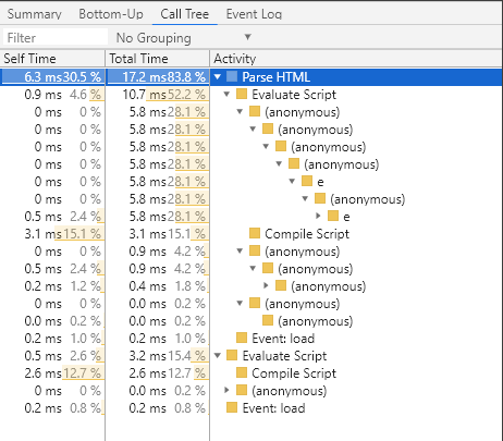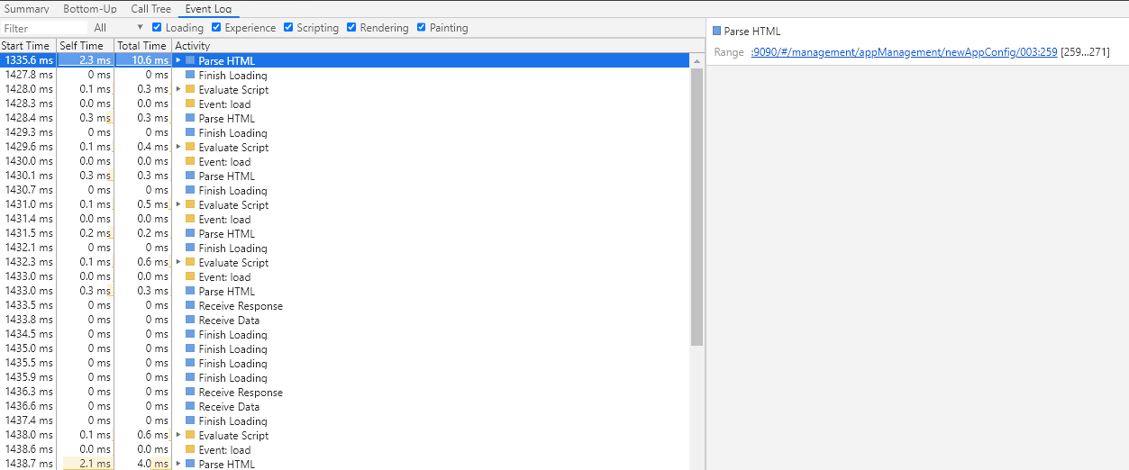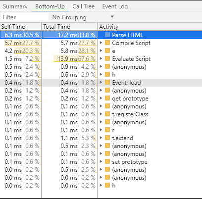 记录页面后,无需仅依靠Main部分来分析活动。DevTools还提供了三个表格视图来分析活动。每个视图您提供有关活动的不同视点: