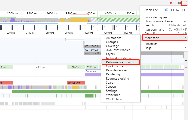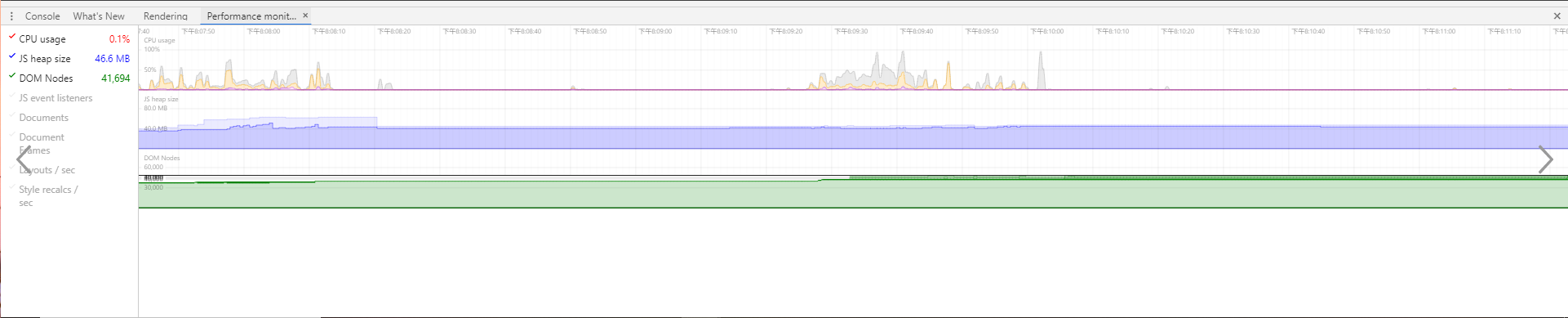 1、Performance monitor面板:页面性能的实时监控