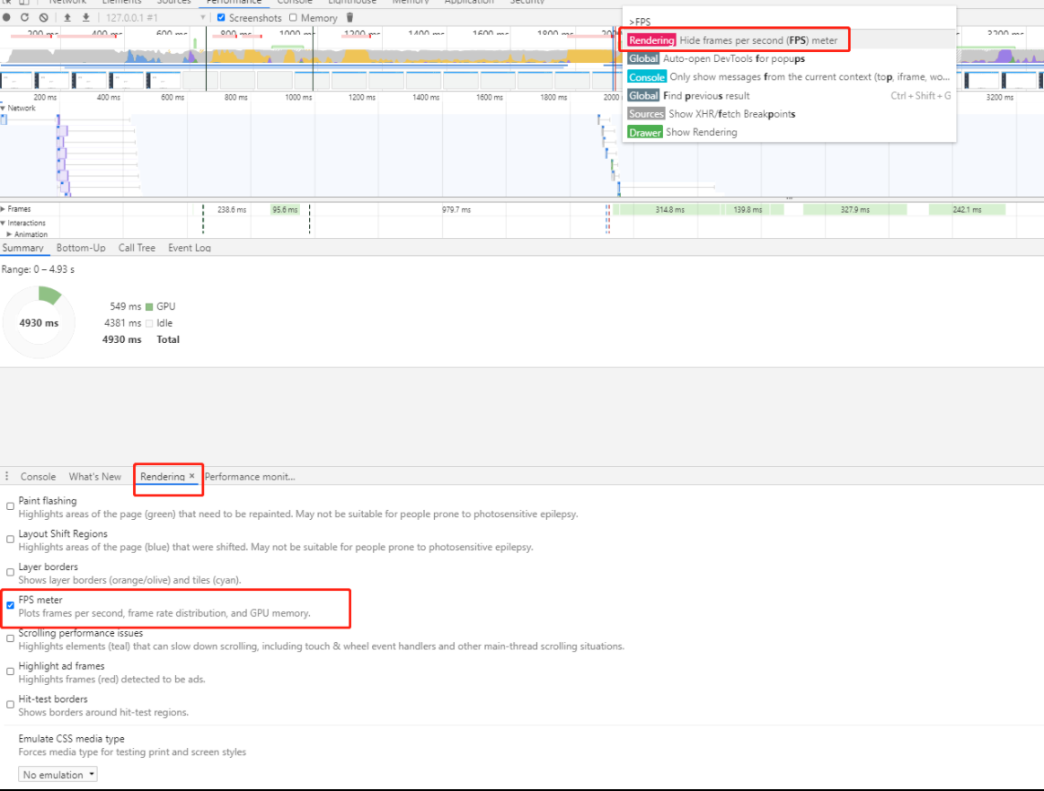 2、实时FPS面板:可以实时展示页面的FPS指标