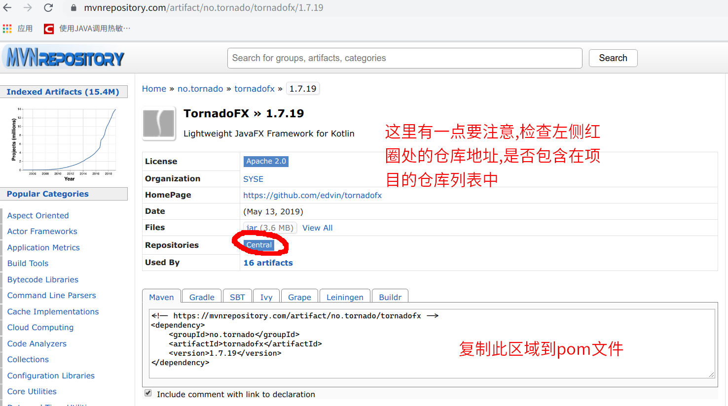 2. https://mvnrepository.com/ 可以找到依赖,但是却无法使用maven下载到依赖,但其实这个网站只提供maven仓库包的索引与查询并不提供下载,从这个网站添加的依赖包还是需要到原网站下载