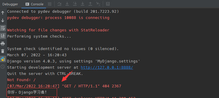 3.查看一下访问路径http://127.0.0.1:8888/hello