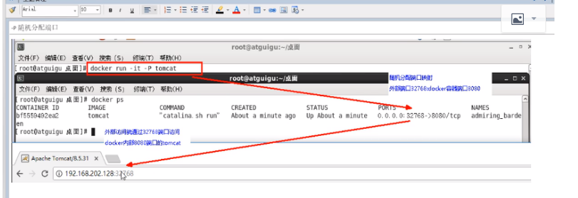 2. docker run -it -P docker端口号:容器端口号 容器id/容器name