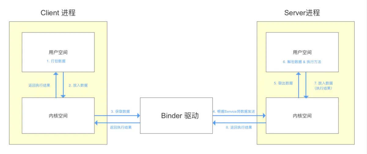 而Binder,就是充当连接两个进程(内核空间)的通道