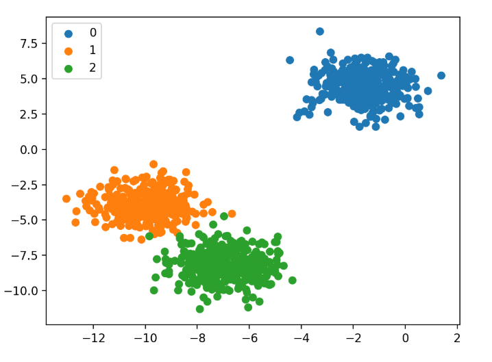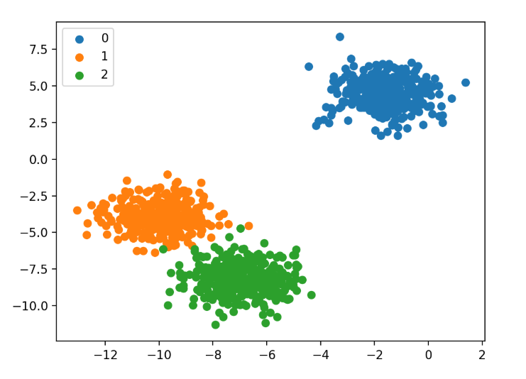 下面的代码表示生成一个包含1,000个示例的数据集,每个示例都有两个输入特征。一共有三个类别,每个类别可能带有两个标签(0或1)之一。