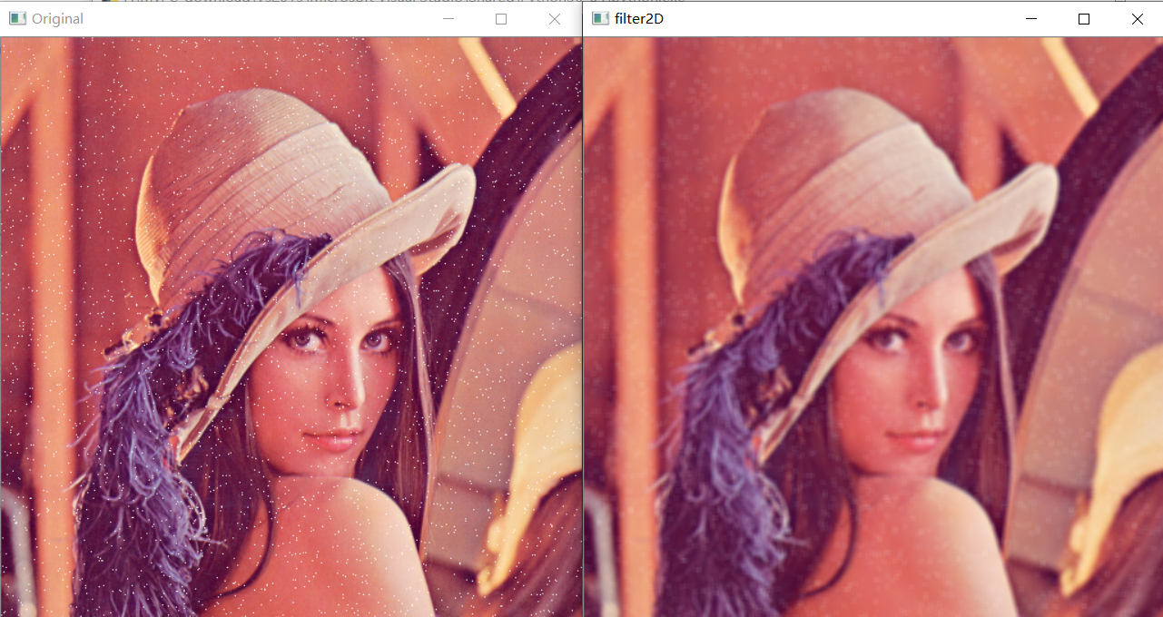 | sigmaColor | 在颜色空间中过滤sigma。该参数的值越大,意味着像素邻域内更远的颜色(参见sigmaSpace)将混合在一起,从而产生更大的半相等颜色区域 |