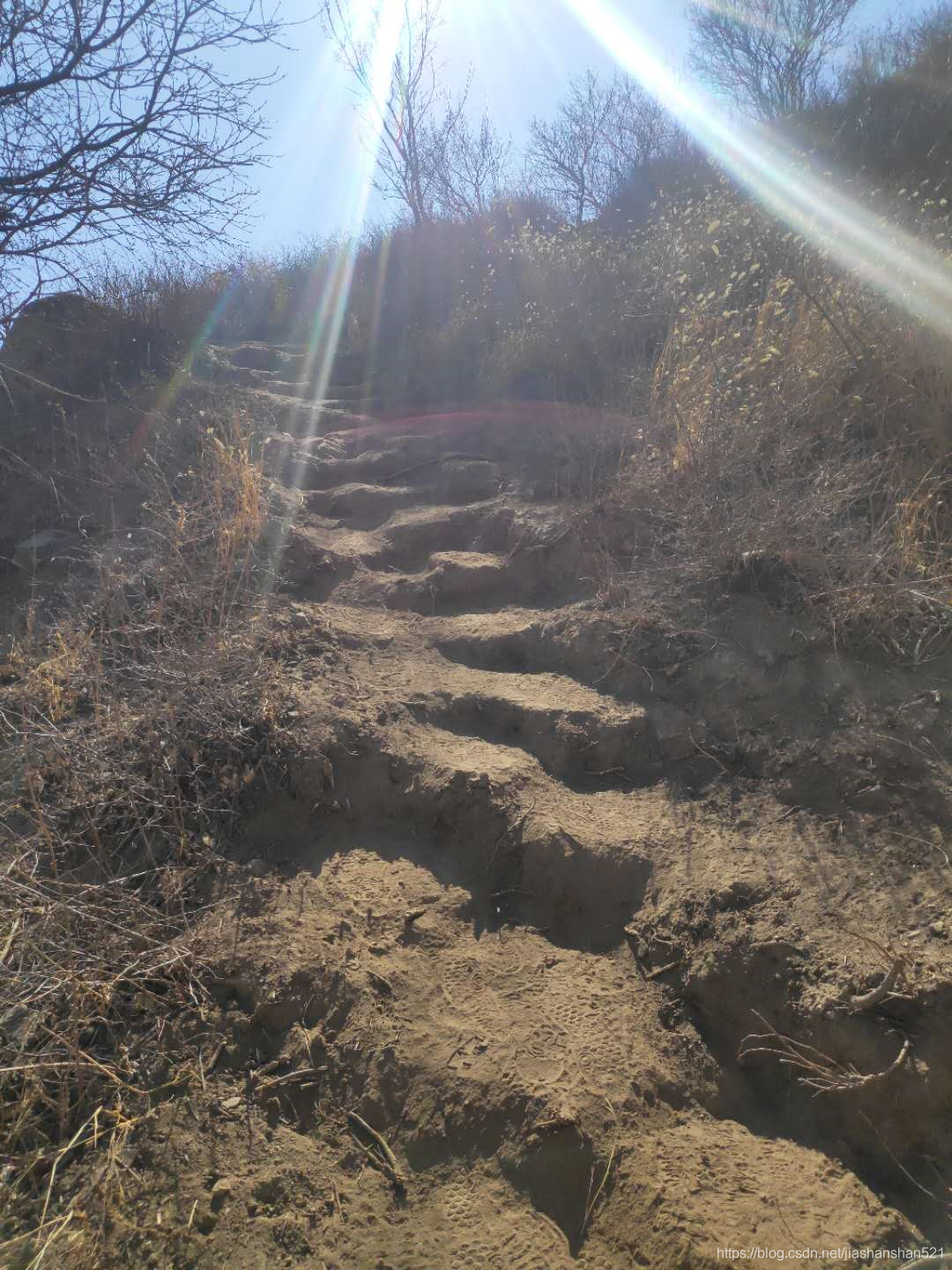 8、沿着柏油马路走一段,穿过一个小土坡,主峰近在眼前。通往主峰的路,是土路,要手脚共用的爬了。