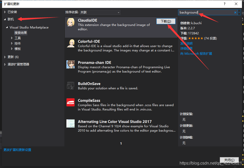 第二步、选择联机--》搜索background--》下载
