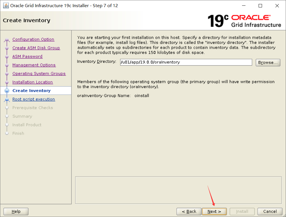 Changing groupname of /u01/app/19.0.0/oraInventory to oinstall.