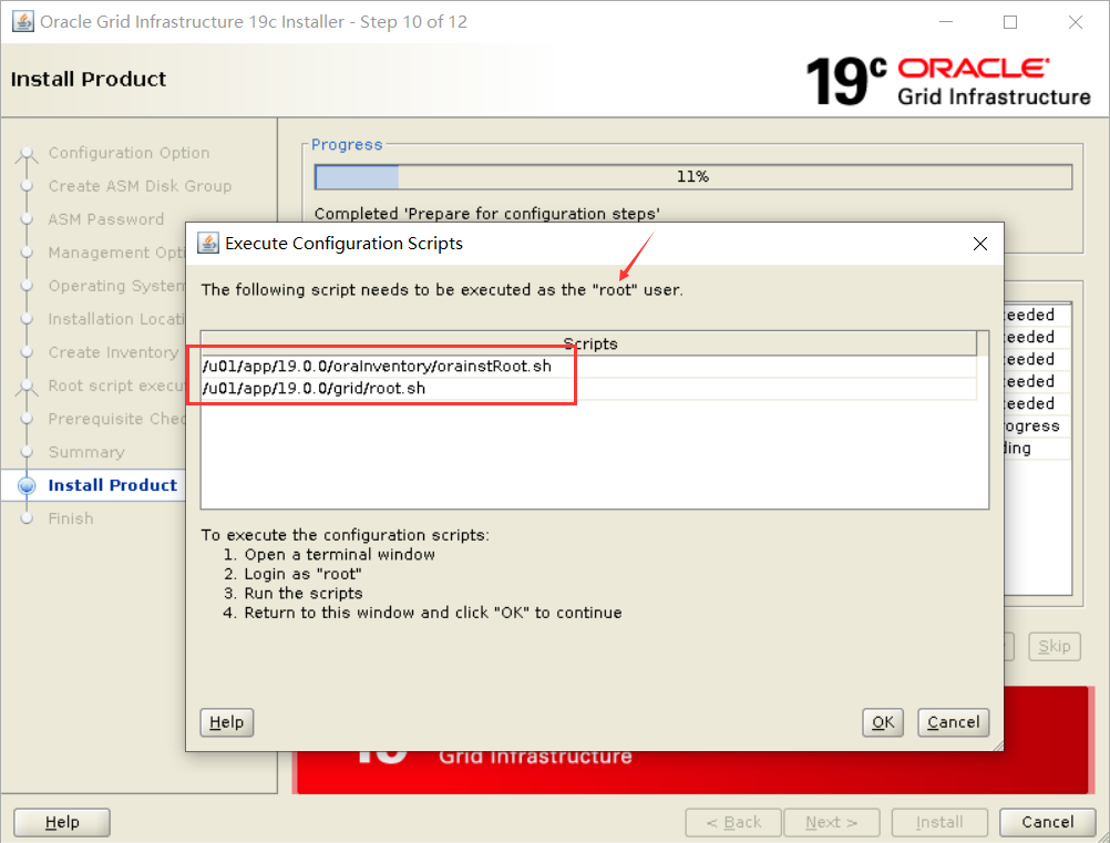 11)安装产品,安装过程中执行root脚本,执行完脚本点击OK