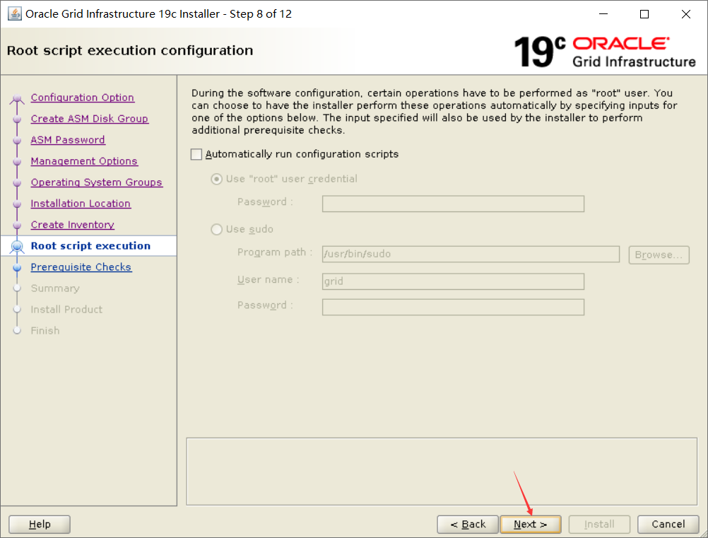 8)Root脚本执行配置,若自动进行执行root脚本,勾选Automatically run configuration scripts