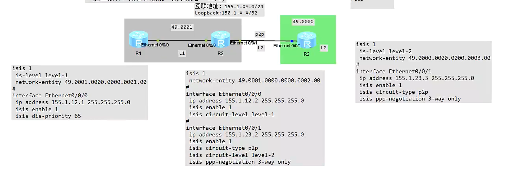isis通过邻居关系是否为level-2来判断是否为骨干区域(默认路由器是level 1-2 )