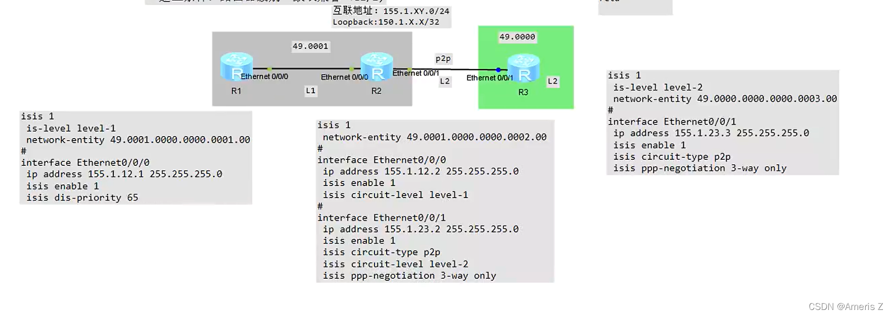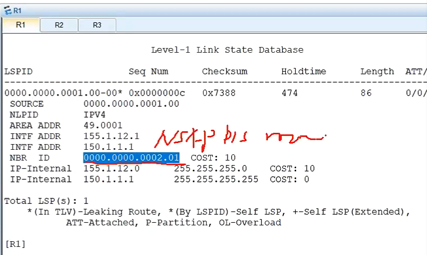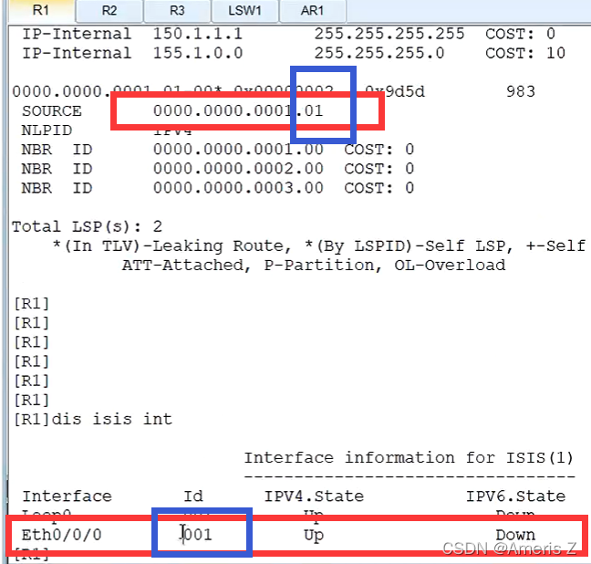 L1邻居建立:路由器级别一致,区域id一致(L1 与L1或 L1/2);