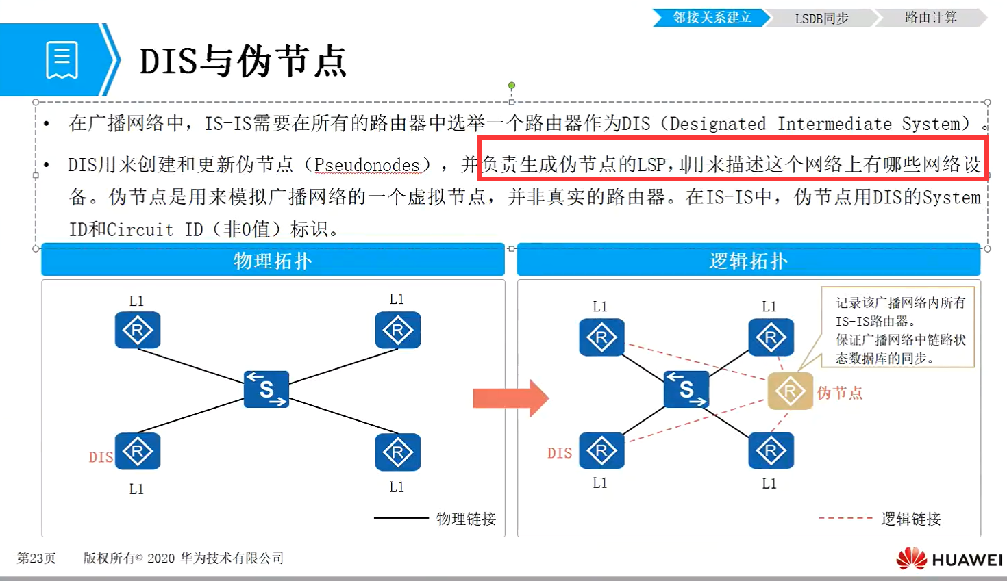 负责生成伪节点的LSP,用来描述网络中的设备