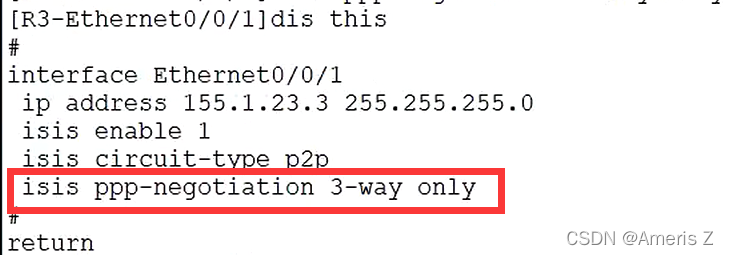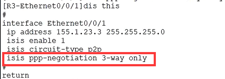 出于安全考虑,默认是三次握手(直到收到来自对方发来的hello包里包含有自身的system ID信息),建立邻居,但也可以修改握手次数,比如两次(只要收到hello包,不管里面包不包含自己的system ID信息,都建立邻居),这里是强制三次握手