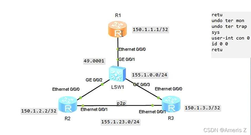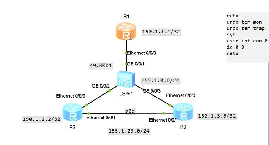 1)MA广播网络中建立isis邻居