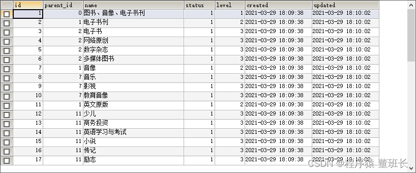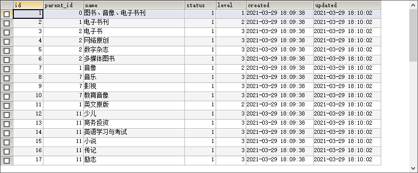 //二级目录的父ID是一级目录的ID