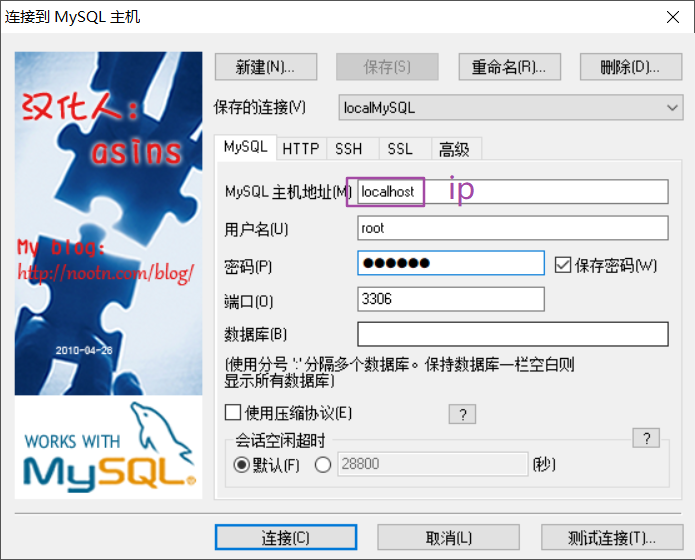 之前我是用的Mysql5.5的版本,按照下面这样连接没什么问题。