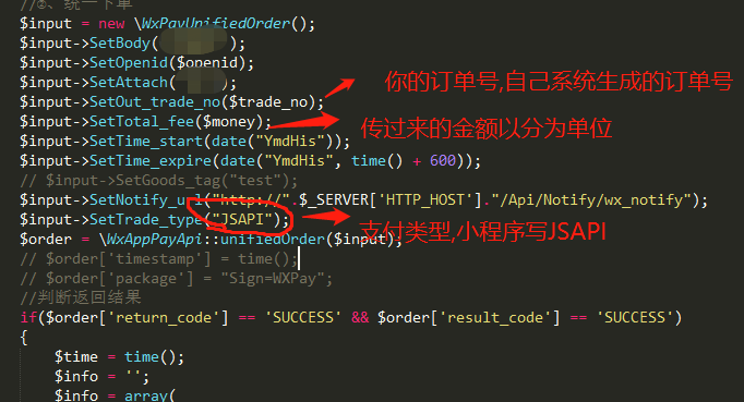 if($order['return_code'] == 'SUCCESS' && $order['result_code'] == 'SUCCESS')
