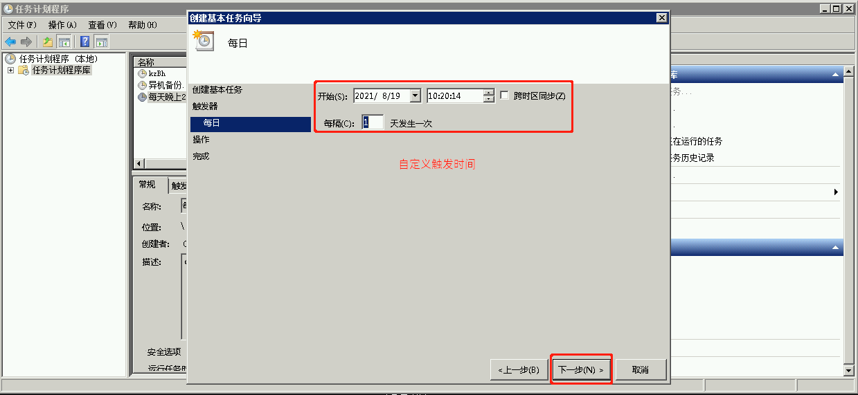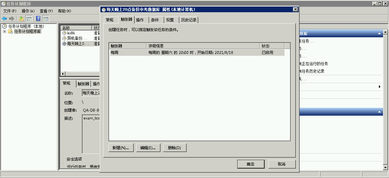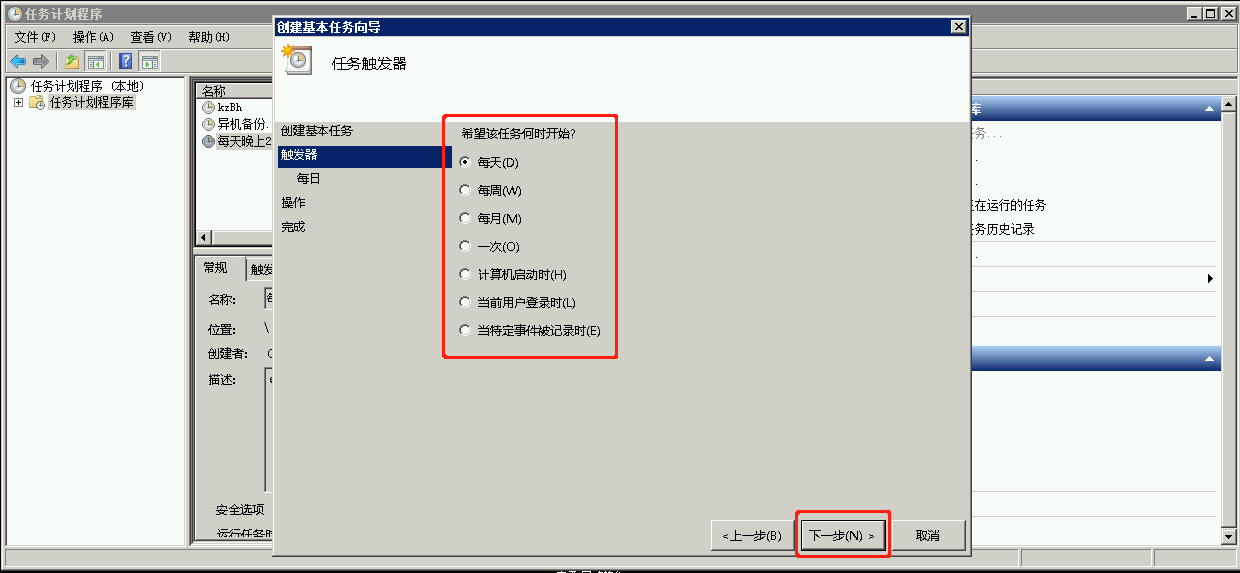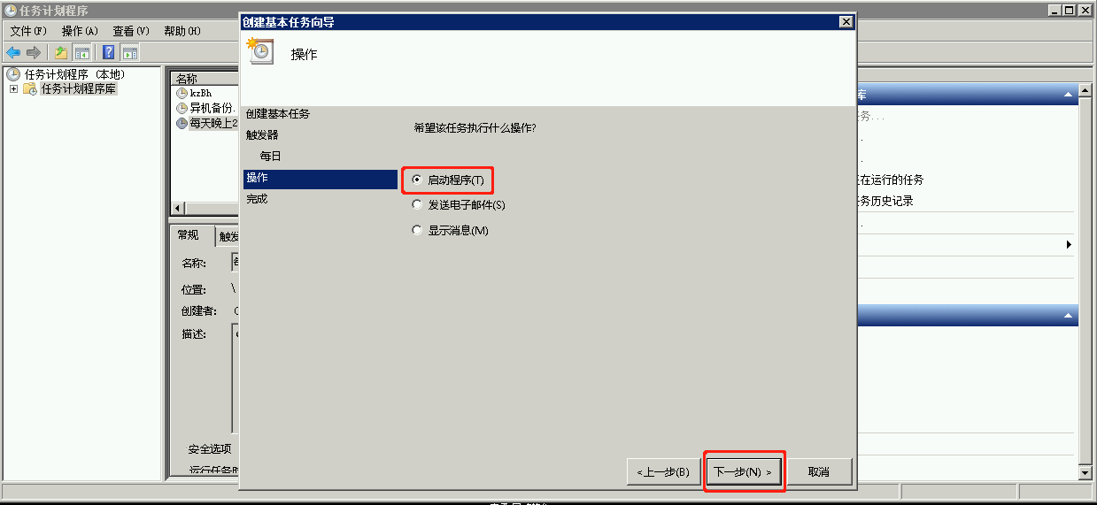 6.新建一个Windows任务计划,定期(比如每天)执行批处理命令