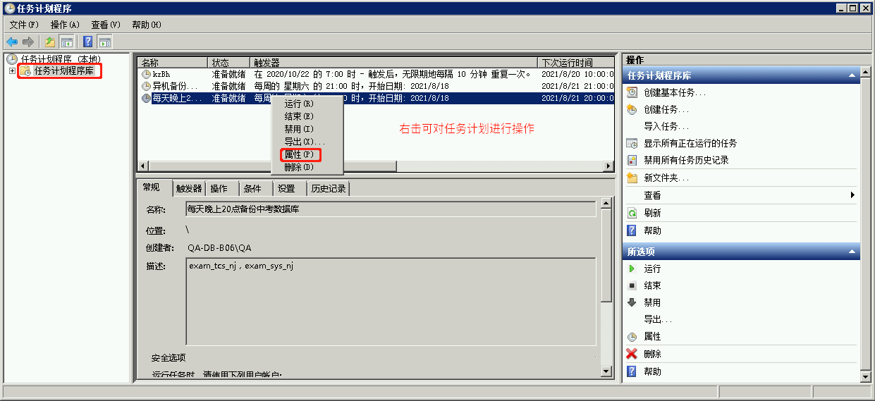 通过点击[任务计划程序],查看所有任务计划,选中某一条计划右击,可对其进行运行,导出等操作