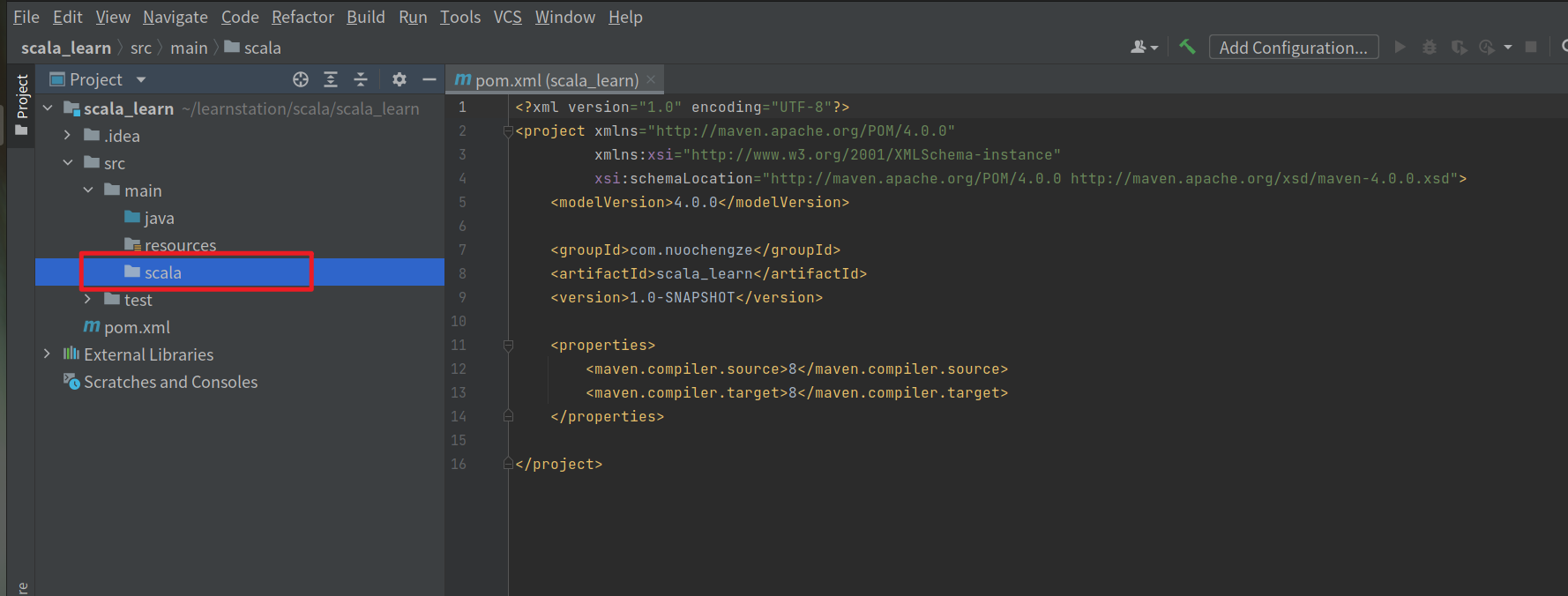 import scala.collection.mutable object Test { def main(args: Array[String]): Unit = { val map1 = mutable.Map("a" ->1 ,"b" -> 2, "c" -> 3) val map2 = mutable.Map("a" ->4 ,"b" -> 5, "c" -> 6,"d" -> 2) val map3 = map2.foldLeft(map1){ (map,kv) =>{ val k = kv._1 val v = kv._2 map(k) = map.getOrElse(k,0)+v map } } println(map3) } }案例2:普通的worldCount案例