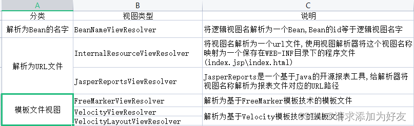 - 在SpringMVC 中为逻辑视图名的解析提供了不同的策略,可以在 Spring WEB 上下文中配置一种或多种解析策略,并指定他们之间的先后顺序。