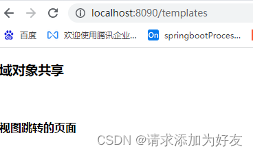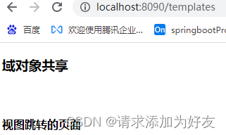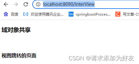 这里注意 第二张图片的访问路径是 localhost:8090/redirectView 但是访问后路径就会自动变换成 方法返回的路径,浏览器接收后,从新发送请求访问。