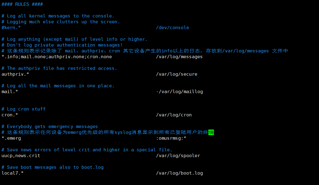 0 emerg:内核崩溃等严重信息(默认定义会在所有终端上显示)