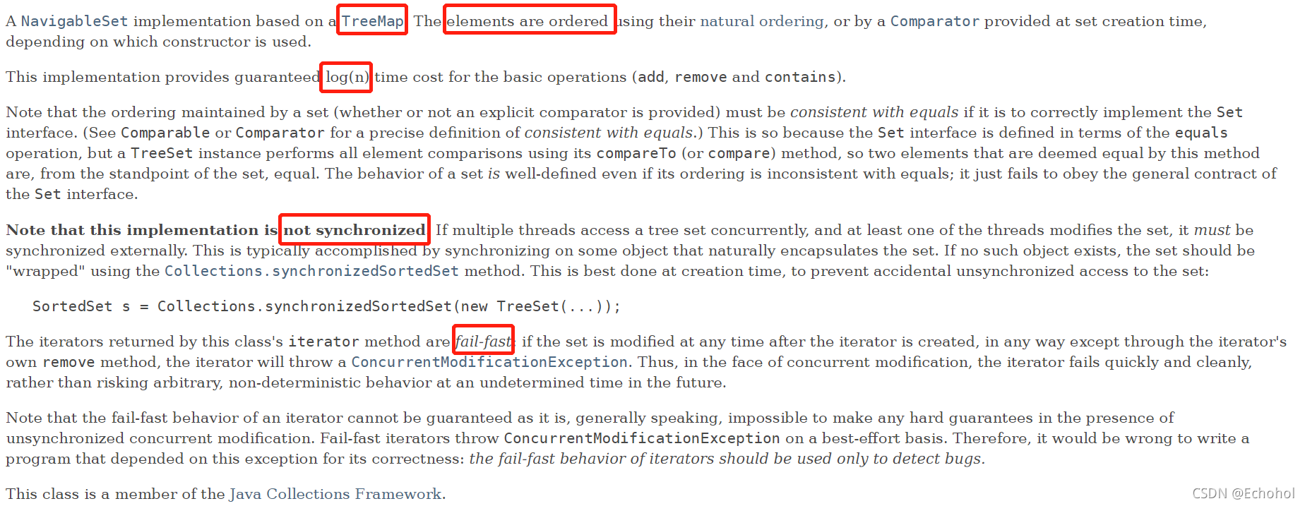 拥有的迭代器iterator,不仅元素会进行有序遍历,而且每次遍历结果都一致;(相比之下,ArrayList的元素遍历无序,HashMap甚至每次遍历的结果都不一样)