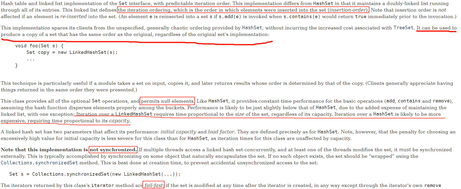 但是遍历使用LinkedHashSet要好点,因为HashSet的遍历不仅要考虑元素个数(size)还要考虑容量(capacity)而LinkedHashSet只需考虑size无需考虑capacity
