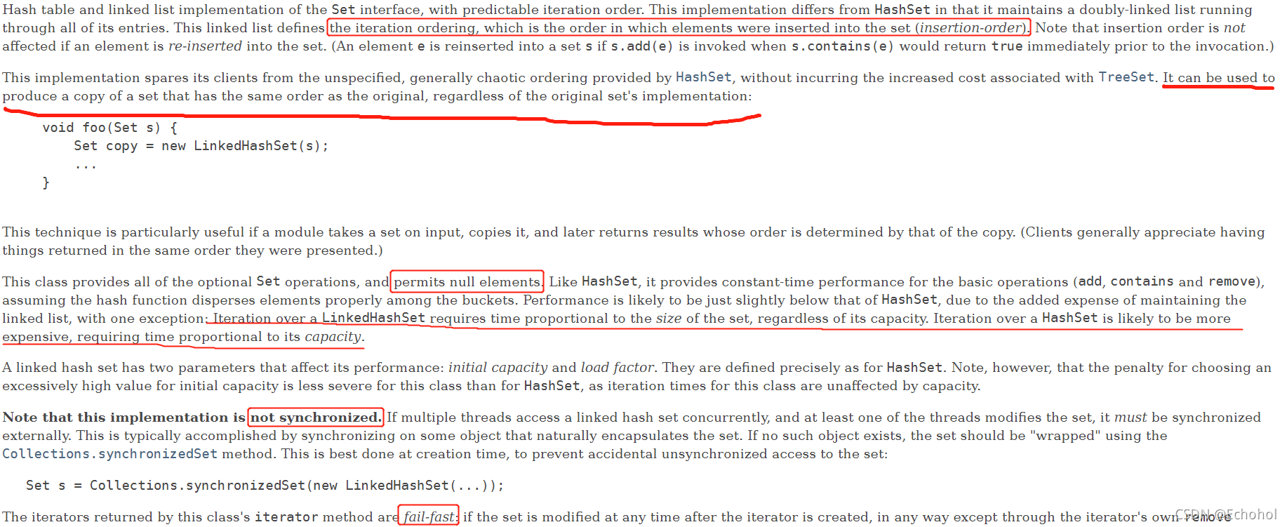 经常用于copy一个Set,因为原来Set中的元素的顺序不会被改变