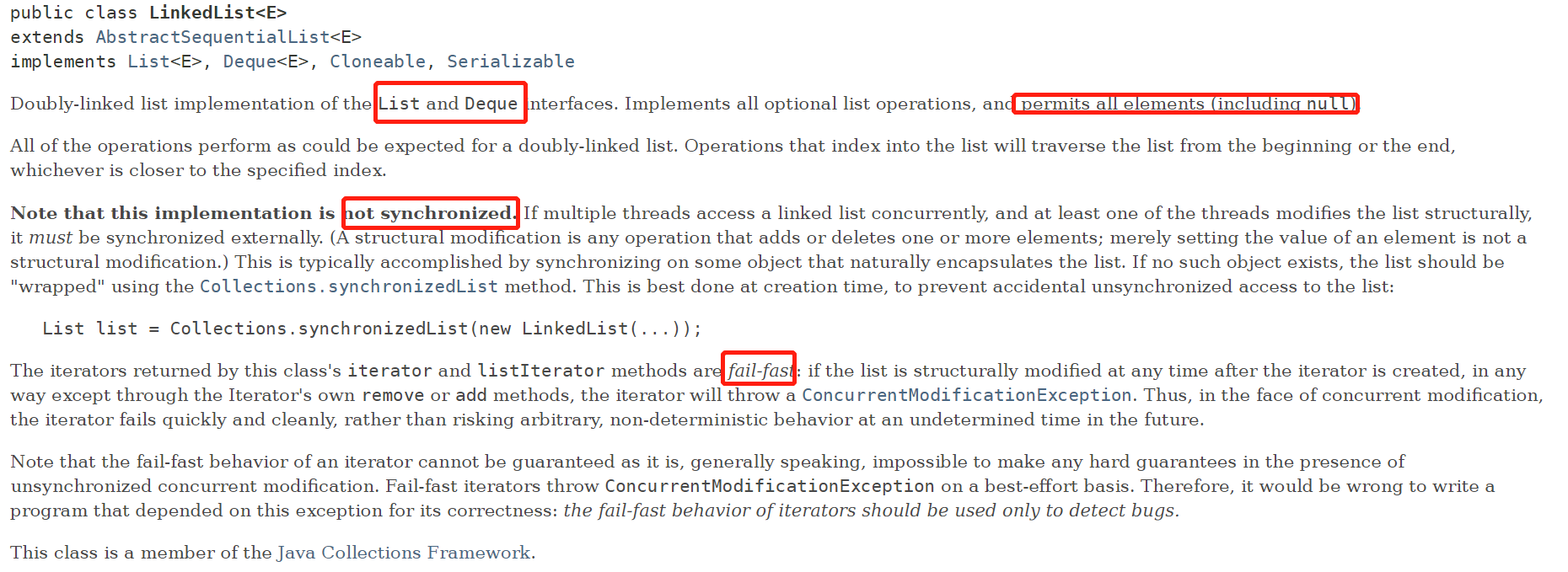 实现的接口:LinkedList还实现了一个Deque接口,故其可当成队列使用;