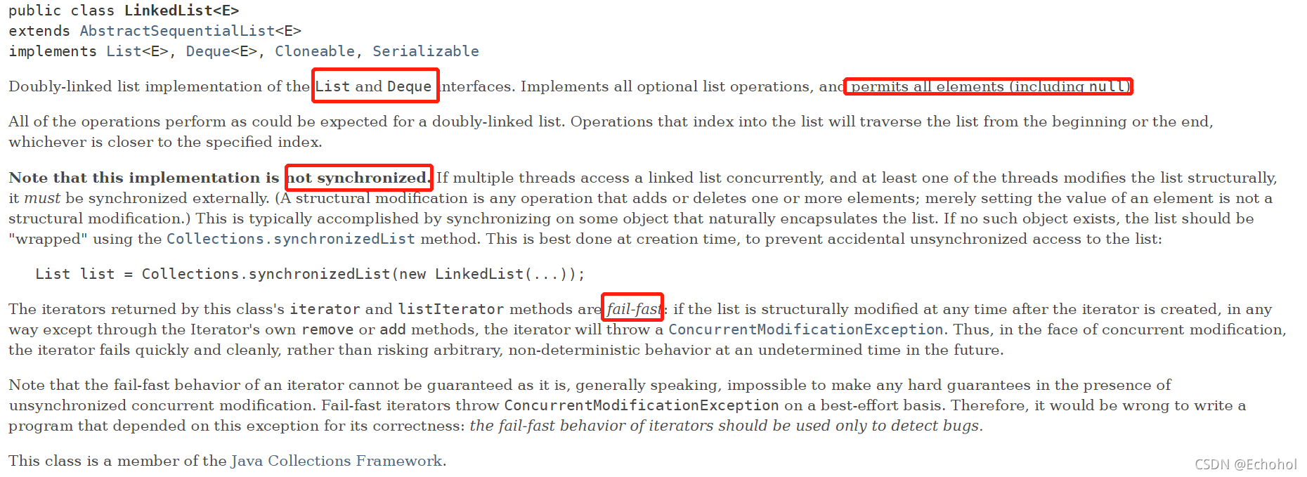 与其他常用的容器类一样(ArrayList, HashMap等)遍历的类型都是fail-fast的;