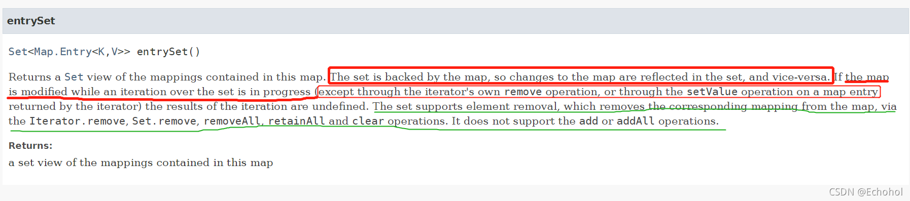 entrySet是基于Map实现的,对Map的修改会反映到entrySet上,反过来对entrySet的修改也会反映到Map上