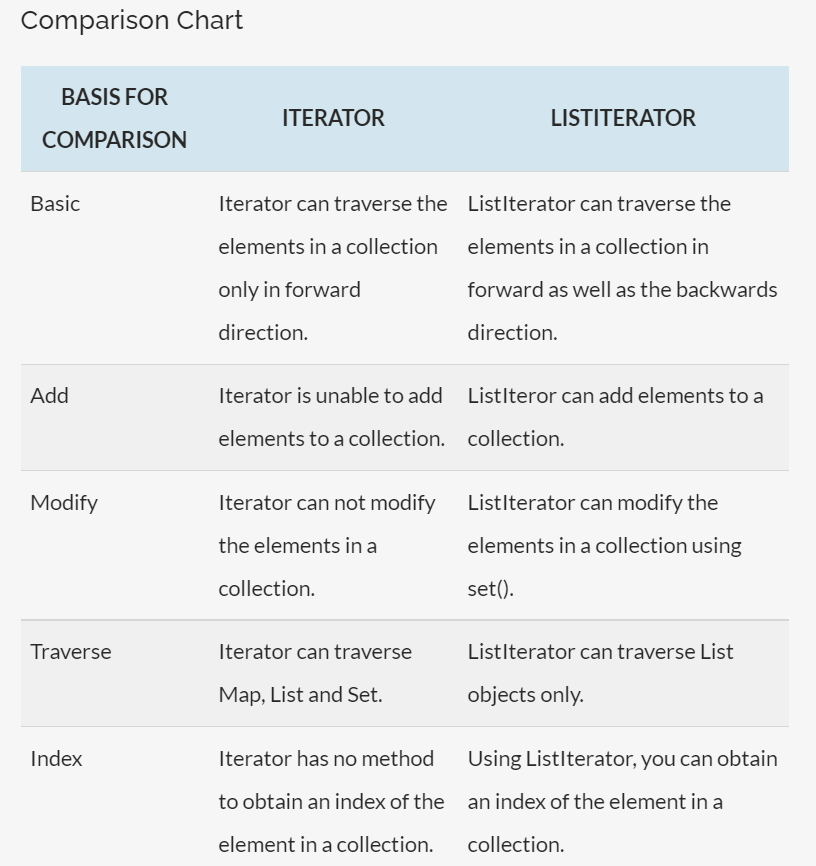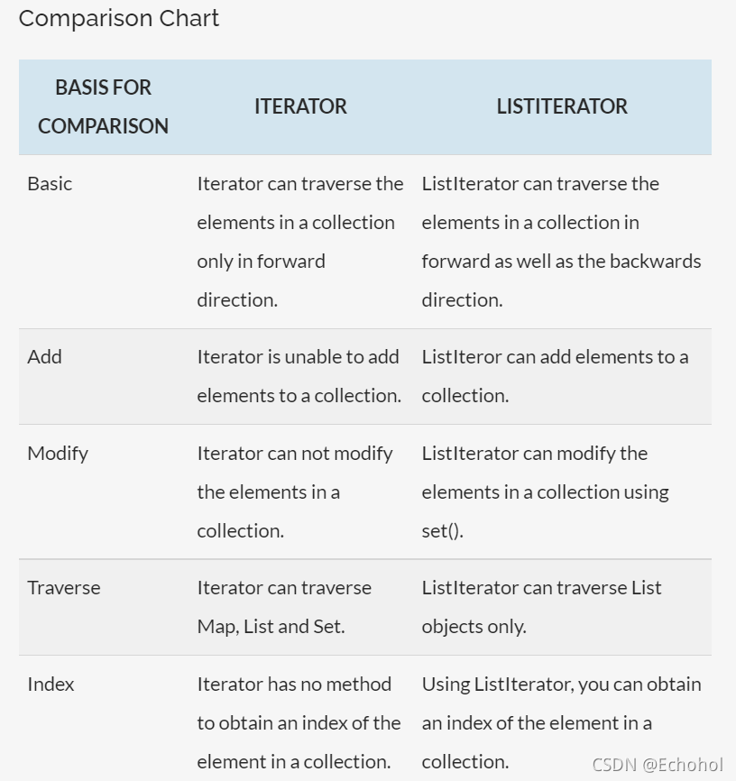 (ListIterator和Iterator的对比表格)