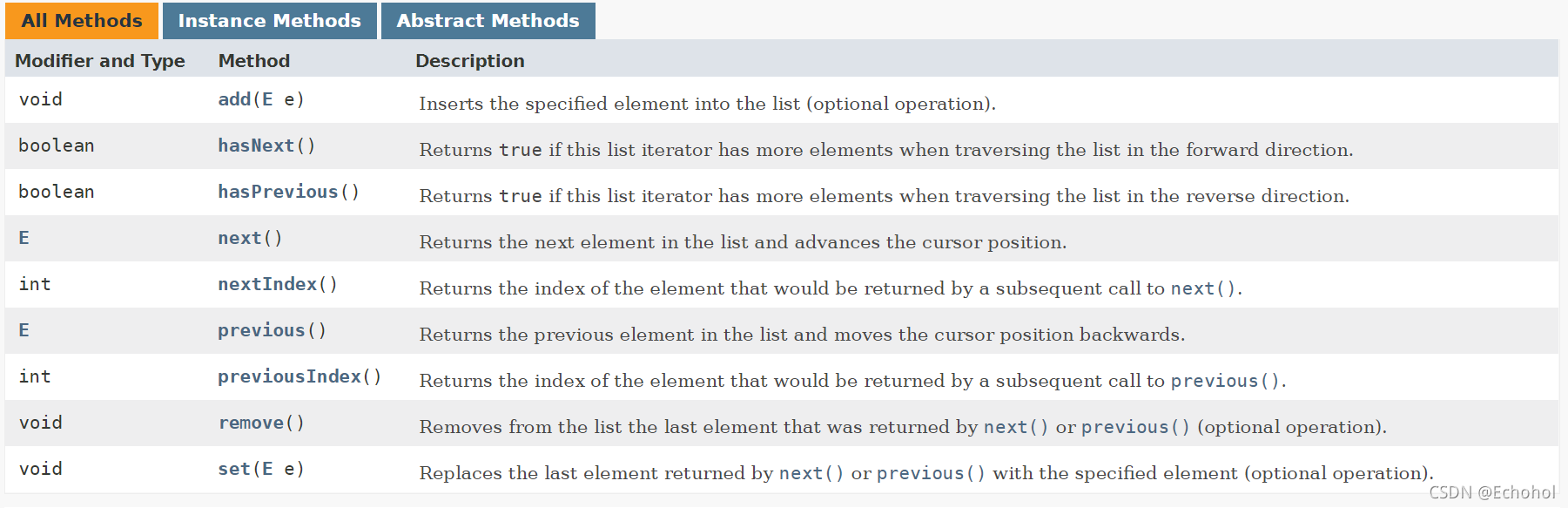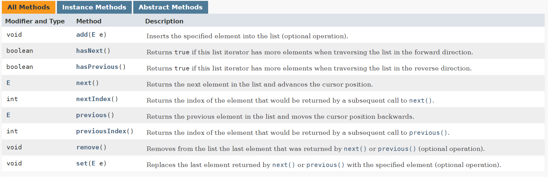 (ListIterator的方法)