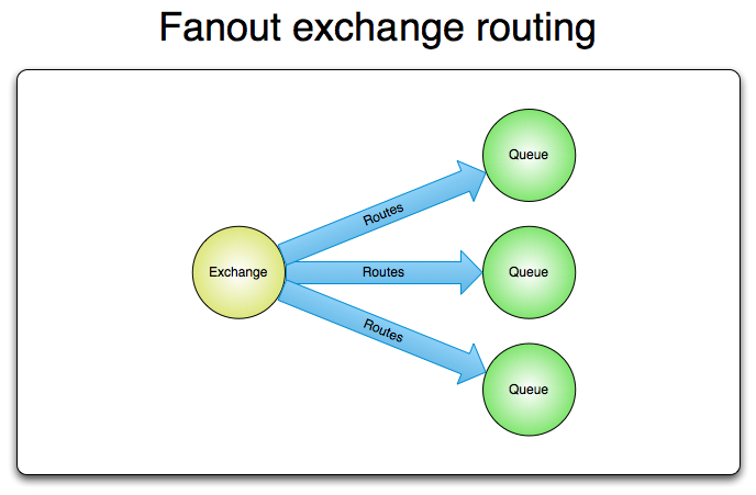 一个 fanout exchange 会将消息分发给所有绑定到此 exchange 的queue中,不管 queue中的 route key。如果有 N 个 Queue 绑定到 一个 fanout exchange 时,那么此时 exchange 收到消息时,会将此消息分发到 这 N 个 queue中,由于此性质, fanout exchange 也常用消息的广播。