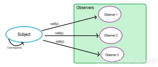 观察者模式里面,changed()方法所在的实例对象,就是被观察者(Subject,或者叫Observable),它只需维护一套观察者(Observer)的集合,这些Observer实现相同的接口,Subject只需要知道,通知Observer时,需要调用哪个统一方法就好了: