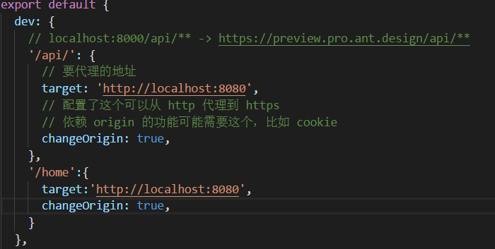 1.在config文件夹下的proxy.ts文件中开发和测试环境下的代理url,只需要将 target 的url改为自己的即可,一般是带上端口号就可以。