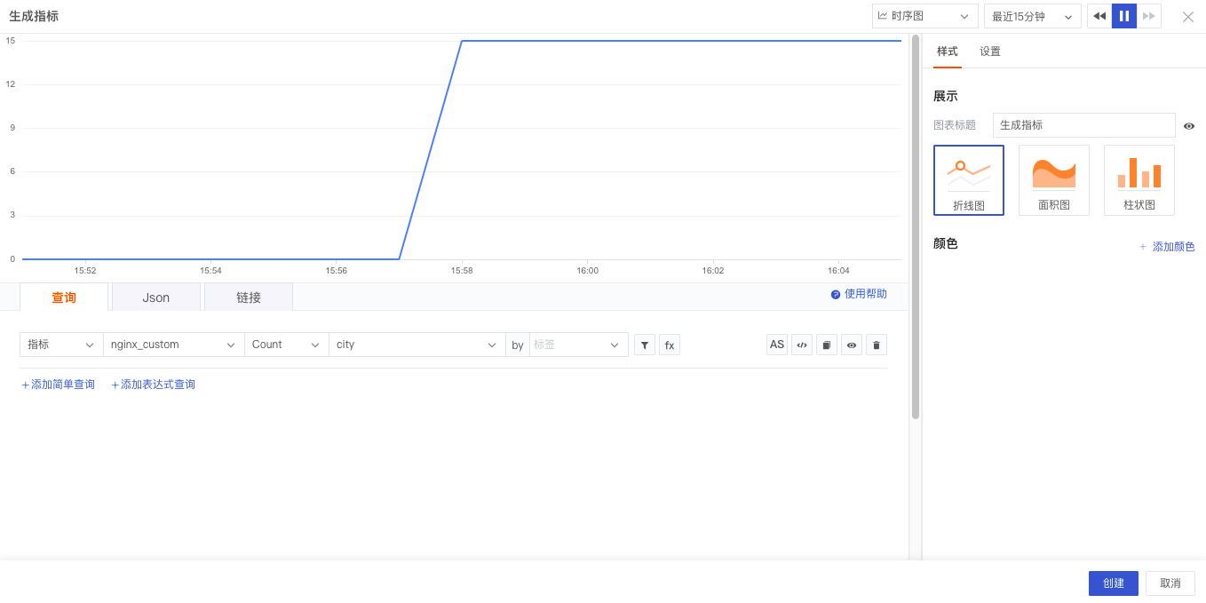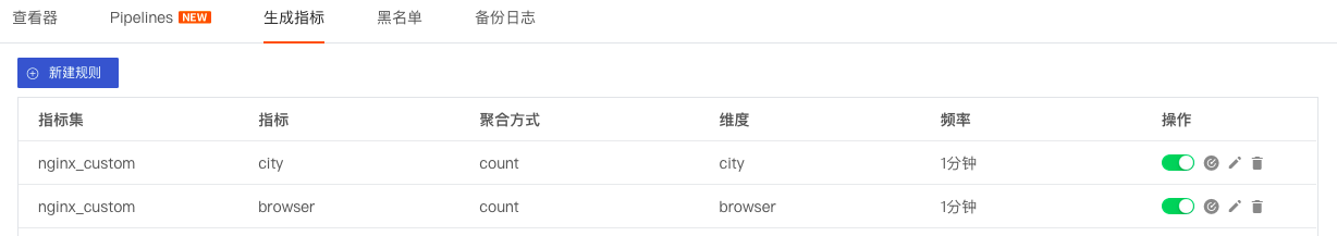 观测云支持通过生成指标的方式,基于当前工作空间内的现有数据来自定义指标数据。在观测云工作空间「日志」-「生成指标」页面,点击「新建规则」即可开始创建新的生成指标规则。更多详情参考文档 生成指标 。