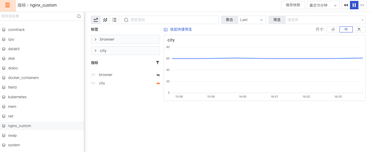 生成的指标可统一在观测云「指标」中查看,或者在「生成指标」页面,点击规则右侧的「查看指标」,跳转至「指标」页面查看对应的指标集和指标。