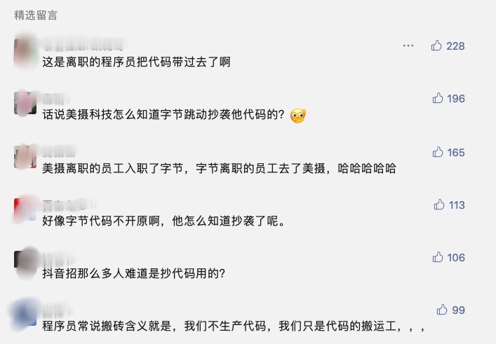 有网友表示:“美摄多年深耕视频剪辑、特效处理,没想到被字节给抄了后路…”;此外,还有网友表示“肯定是把人挖走然后代码也带走了”。