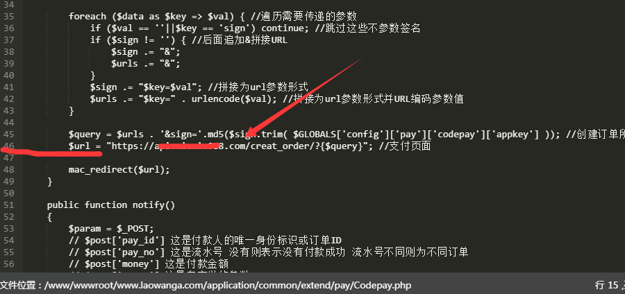 在里面大概46行左右,找到:$url ='xxx.com/create_order/?'